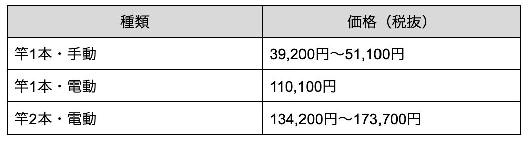 ホシ姫サマは手動タイプでも約4万円から、電動タイプは10万円超と高額ですが、昇降の快適さを重視するなら投資する価値があります。