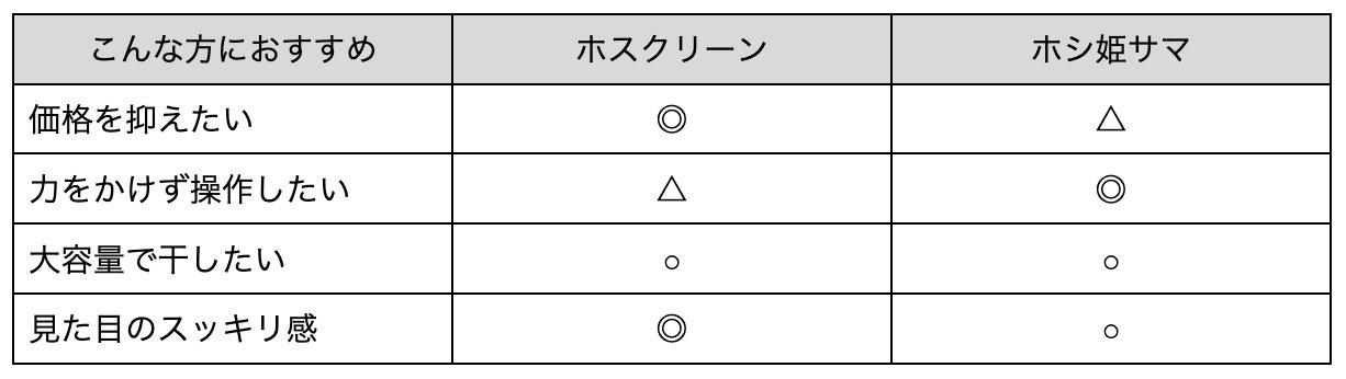 「単純さ」を優先するならホスクリーン、「力いらずの快適さ」を求めるならホシ姫サマがおすすめです。