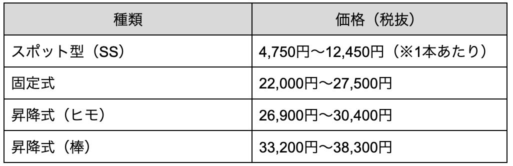 ホスクリーンはタイプによって価格が異なりますが、最も安価なものでは数千円から導入できます。ただしスポット型は1本あたりの価格のため、導入する場合は必ず2本必要になります。なお、同じタイプでも価格に差があるのは、高さや幅の違いによるものです。