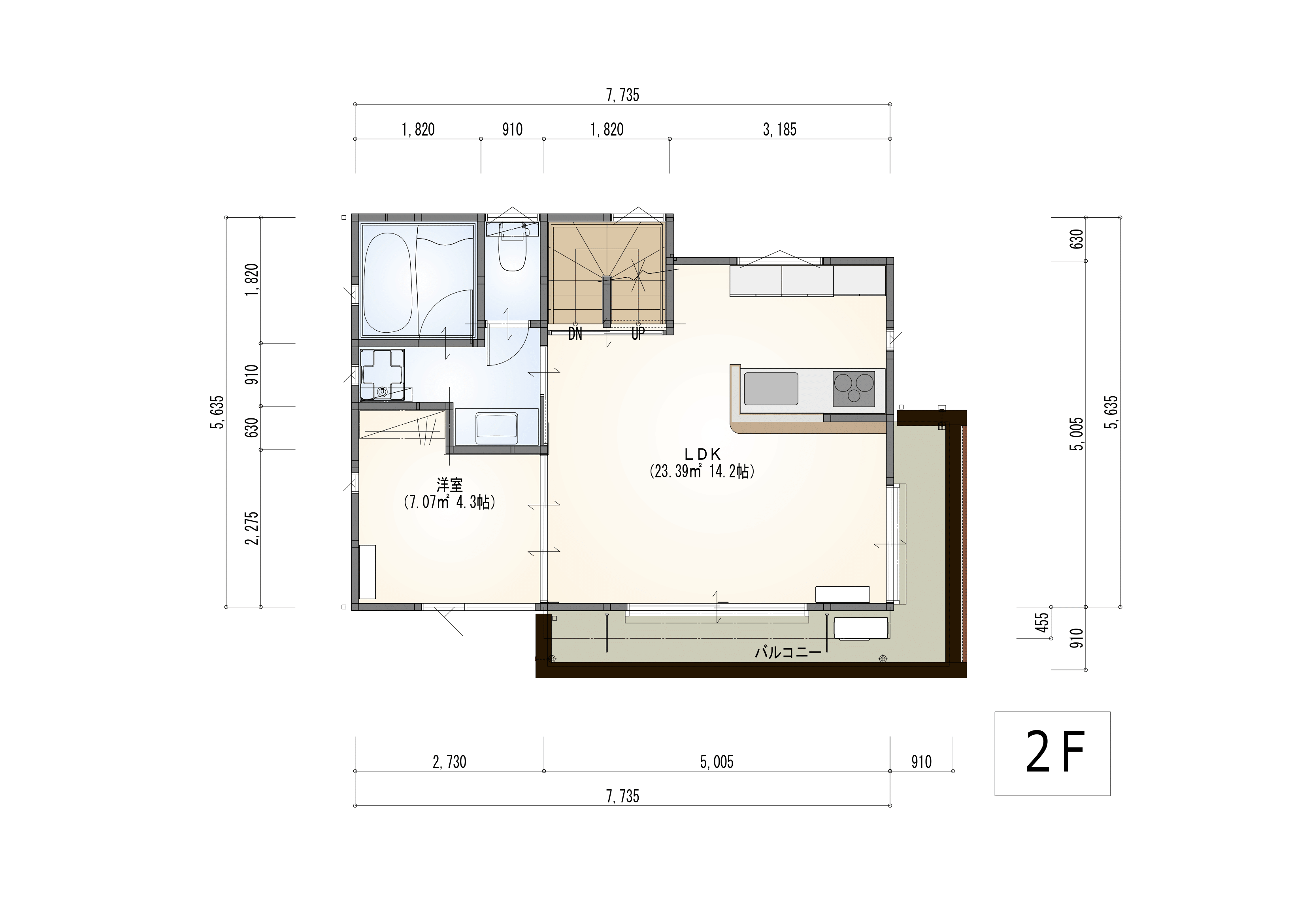 1階の寝室には家庭菜園やガーデニングも楽しめるテラス付き。LDKを2階に配置したことで2面バルコニーからの採光はバッチリ。4部屋あるとファミリー世帯だけでなく在宅ワークや趣味の部屋、ゲストルームにしても便利です。