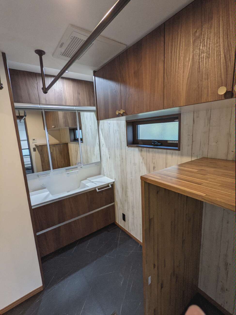 家全体のデザインのを統一しながら、奥様の作業スペースなど、家事負担を削減する工夫も盛りだくさんのお家です。